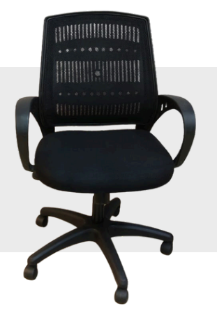 A lightweight black mesh chair with fixed